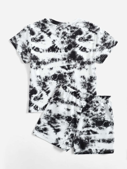 Niñas Shorts con camiseta con estampado de figura de tie dye