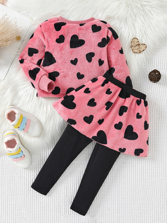 Niñas con estampado de corazón Sudadera & 2 en 1 Leggings