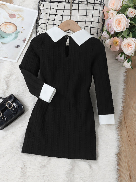 Niñitas Vestido de cuello en contraste de espalda con abertura de ojo