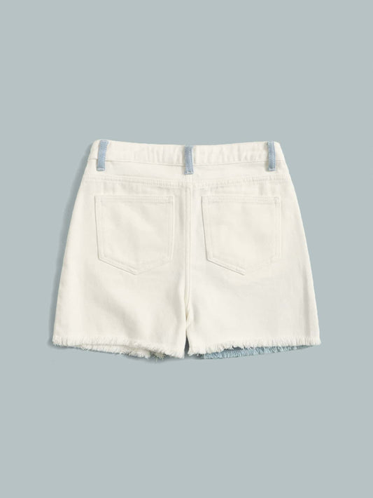 Chicas adolescentes Shorts en mezclilla de dos tonos ribete crudo