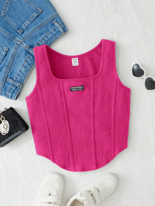 Chica adolescente Top tank con diseño de parche de letra bajo curvo