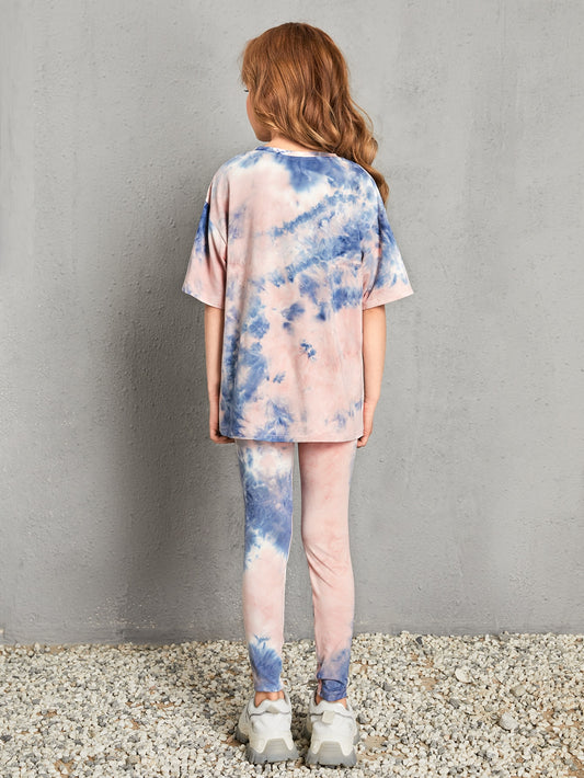 Niñas Conjunto leggings con top con estampado de slogan de tie dye