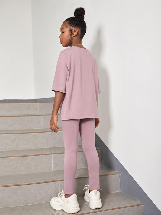 Niñas Camiseta de hombros caídos con diseño de parche & Pantalones bajo con abertura