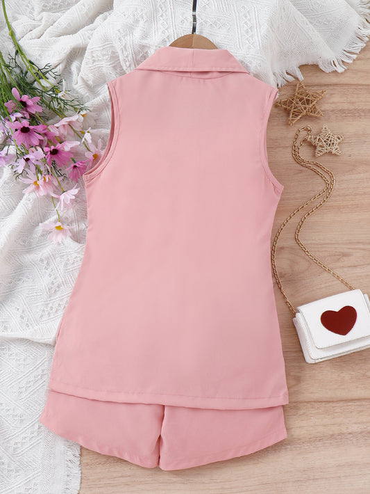 Chicas Abrigo chaleco de cuello cascada & Shorts con top de tirantes