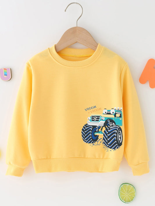Suéter cálido estampado con patrón de coche de dibujos animados para niños para deportes