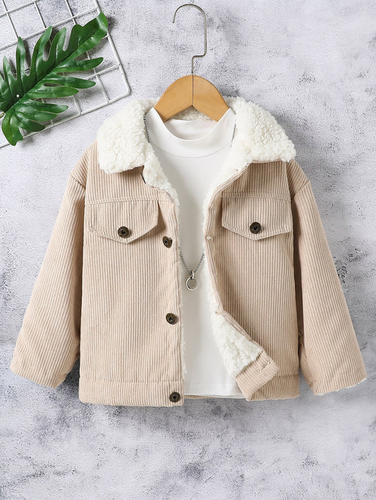 Niñito Abrigo cuello de borreguito con diseño de solapa