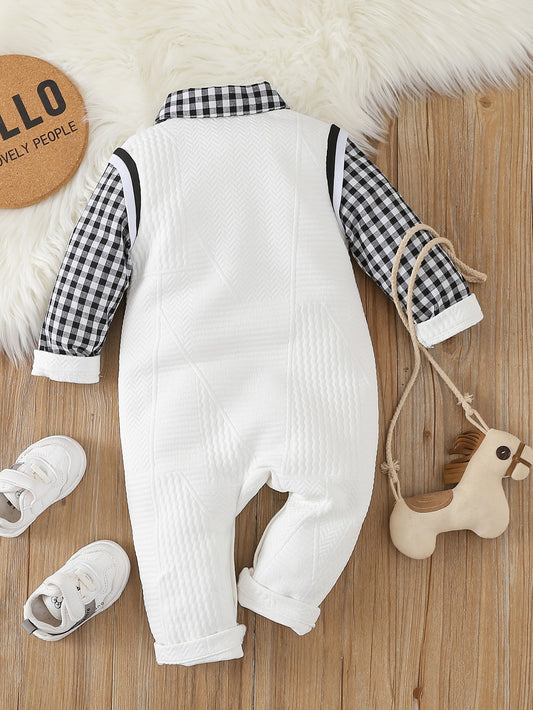 Niño Mono con estampado de guingán ribete de rayas 2 en 1