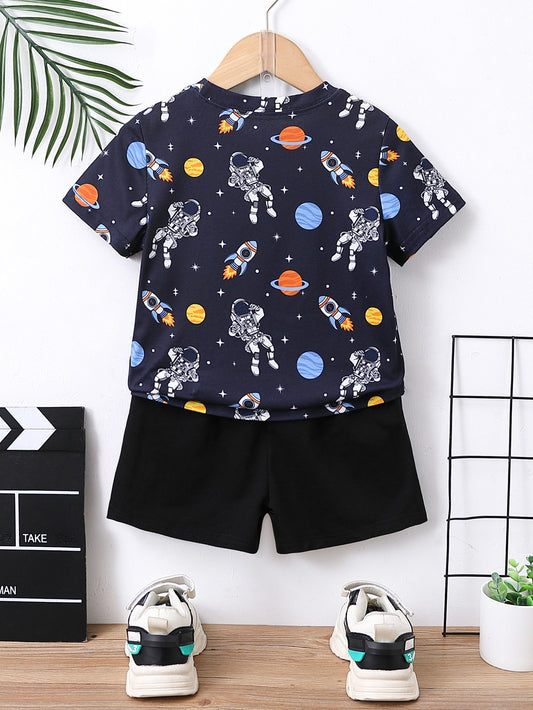 Niñito Shorts con camiseta con estampado de astronauta y planeta