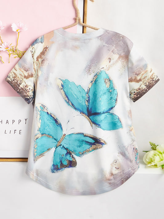 Niñas Camiseta con estampado de mariposa bajo curvo