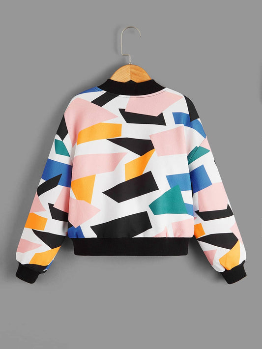 Niñas Cazadora tipo bomber con estampado geométrico de hombros caídos