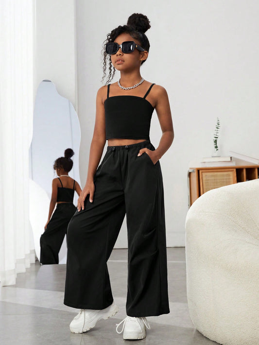 Conjunto para niña unicolor Top de tirantes & Pantalones de pierna ancha