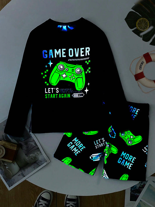 Conjunto de dos piezas de traje de baño tipo tankini para niño preadolescente con estampado de videojuegos que brillan en la oscuridado