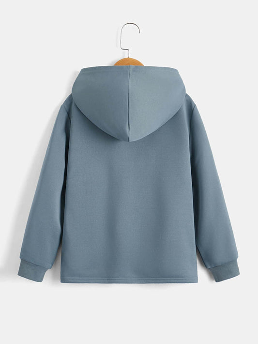 Niños Capucha con estampado de slogan con bolsillo de canguro