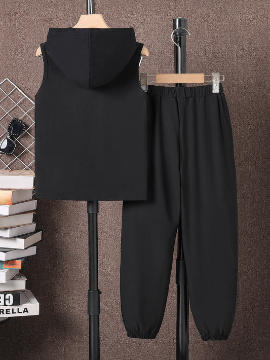 Chicos Top tank con estampado de slogan con capucha con pantalones deportivos