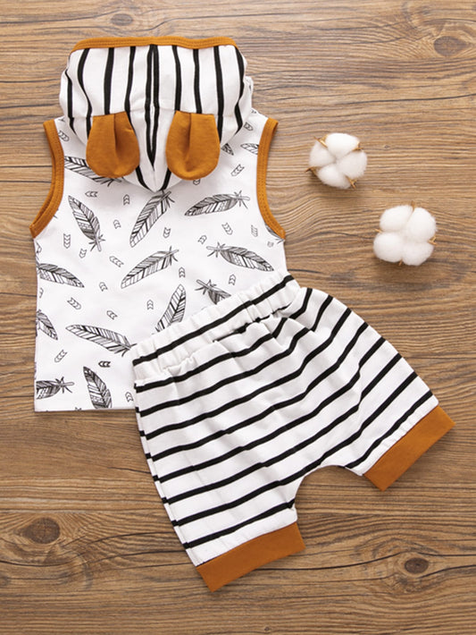 Tank top con capucha de Niños con diseño de oreja 3D con estampado de pluma con shorts