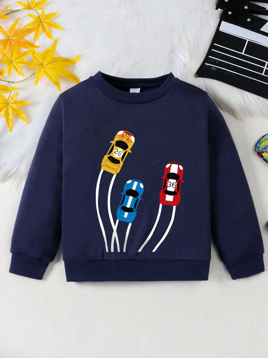 Suéter cálido estampado con patrón de coche de dibujos animados para niños para deportes