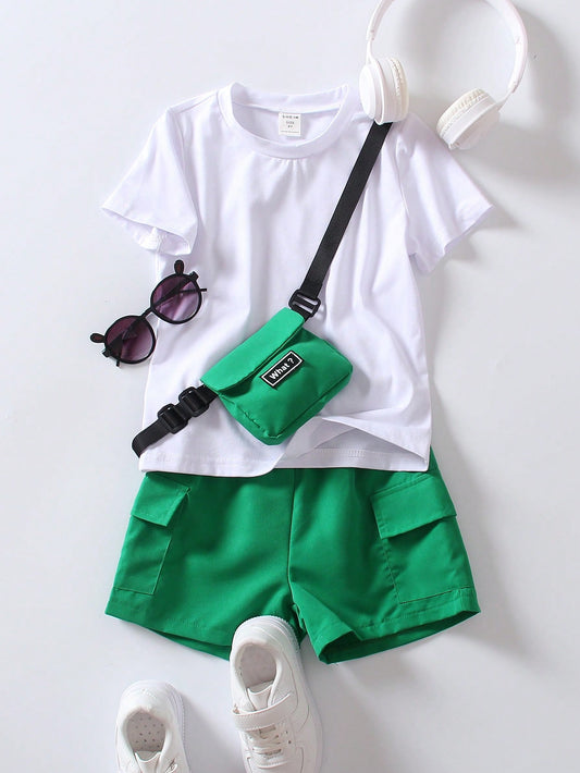 Niñito Camiseta unicolor & con bolsillo con solapa Shorts